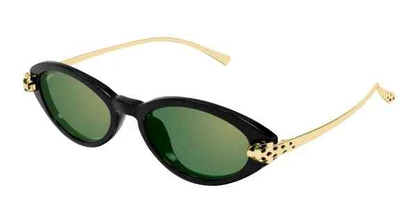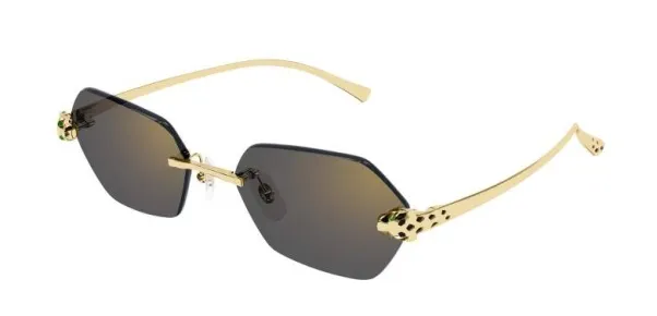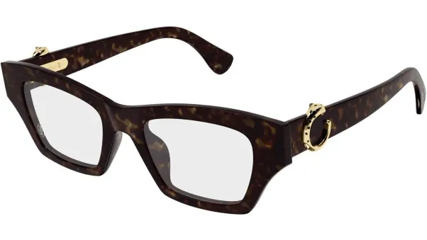 Panthère Massai 設計概念融合卡地亞珠寶經 典豹紋元素,演繹摩登奢華風格,展現品牌傳承與創新。 金屬鏡腳點綴優雅琺瑯細節,模仿豹紋,呼應珠寶藝術,簡潔奢華。 提供混合材質及金屬無框等不同造型,其中光學鏡架的鏡腳較以往輕薄,提升舒適度。